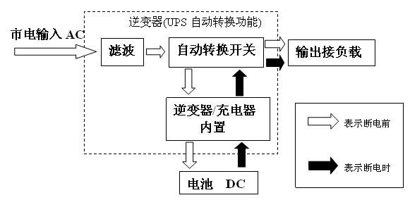 步骤2:当市电突然停电后,在4ms内系统自动切换成逆变供电,确保负载持续工作;